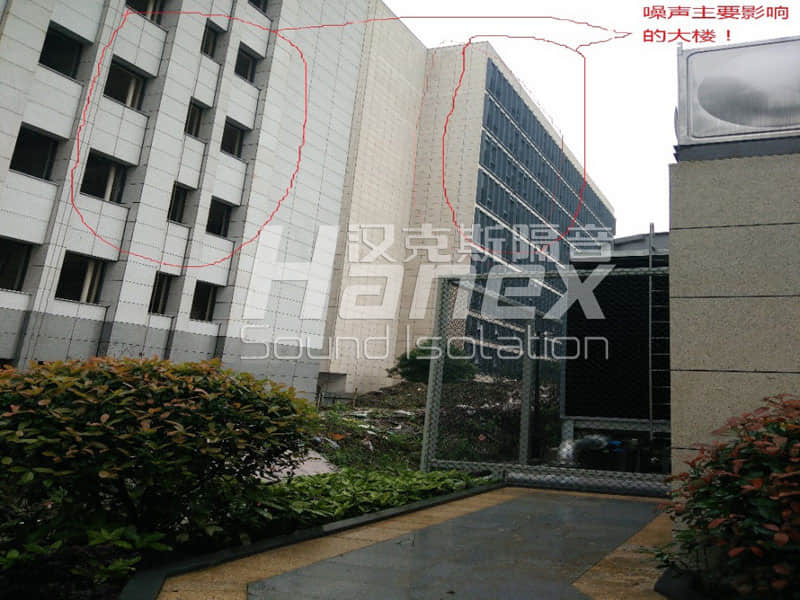 同花順大樓冷卻塔運行時嚴(yán)重影響了西面周圍住宅樓的聲環(huán)境,即四臺冷卻塔運行時,其風(fēng)口噪聲為93dB(A),進(jìn)風(fēng)口處噪聲值為83 dB(A),其噪聲造成西面住宅樓的窗外噪聲超標(biāo),其窗外大致為73dB(A),需進(jìn)行降噪處理。